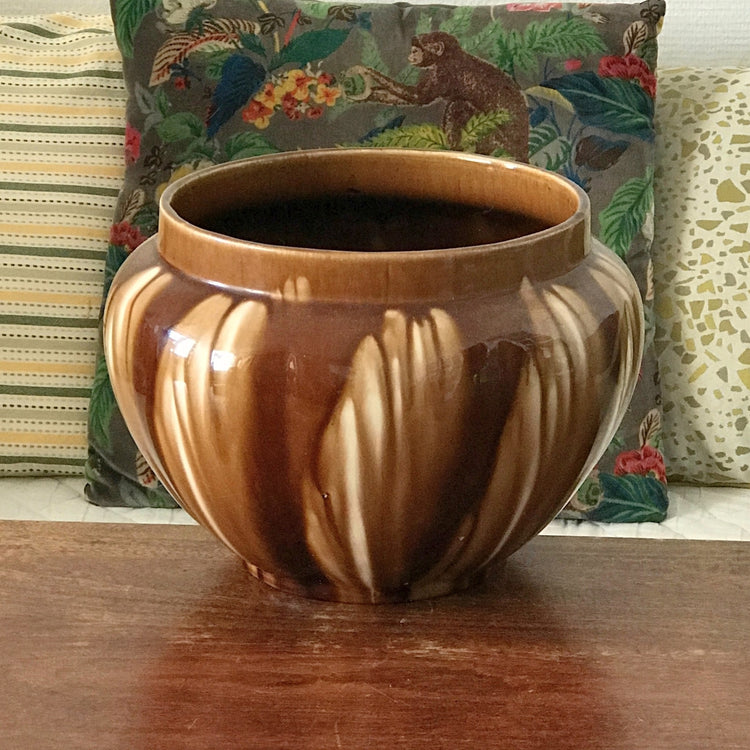 / Grand cache-pot en céramique émaillée Louis Gueule Vierzon