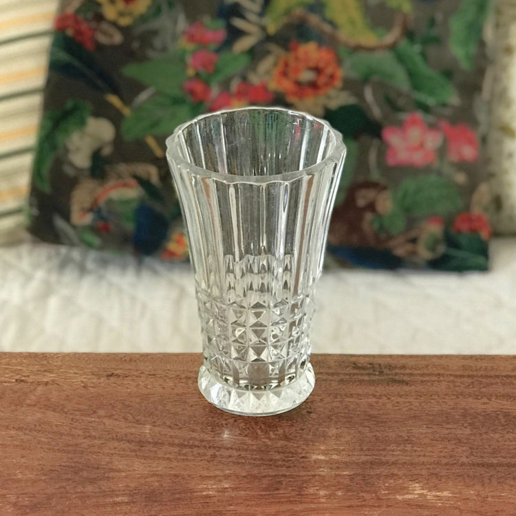 / Vase cornet en verre moulé pointe de diamant hauteur 17 cm