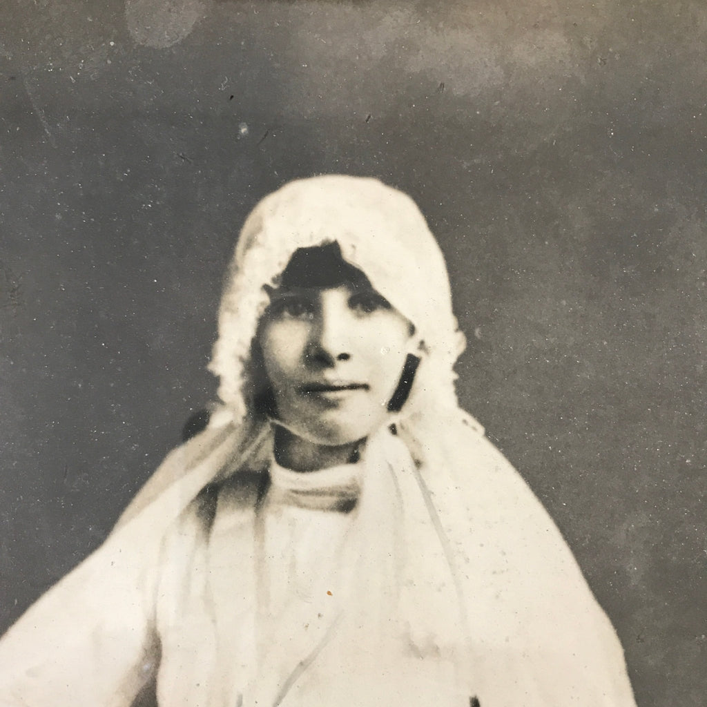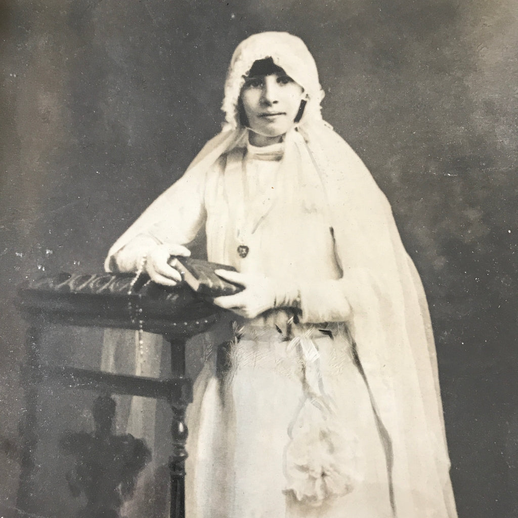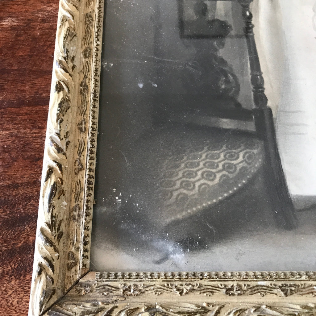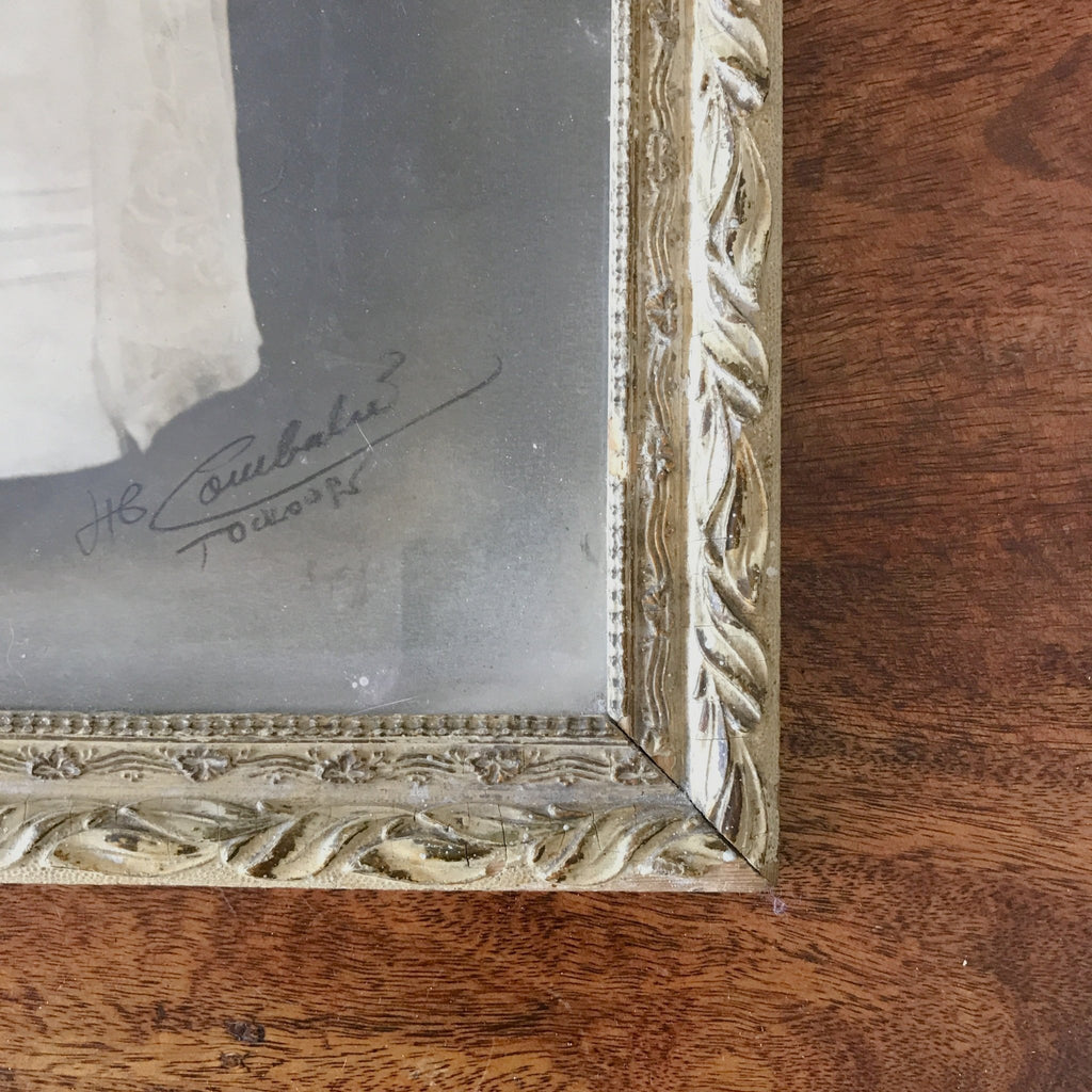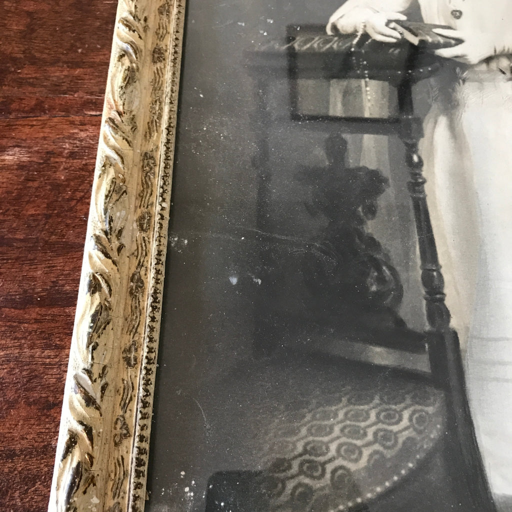 / Grande photographie en noir et blanc d'une jeune communiante encadrement bois peint blanc Circa 1920