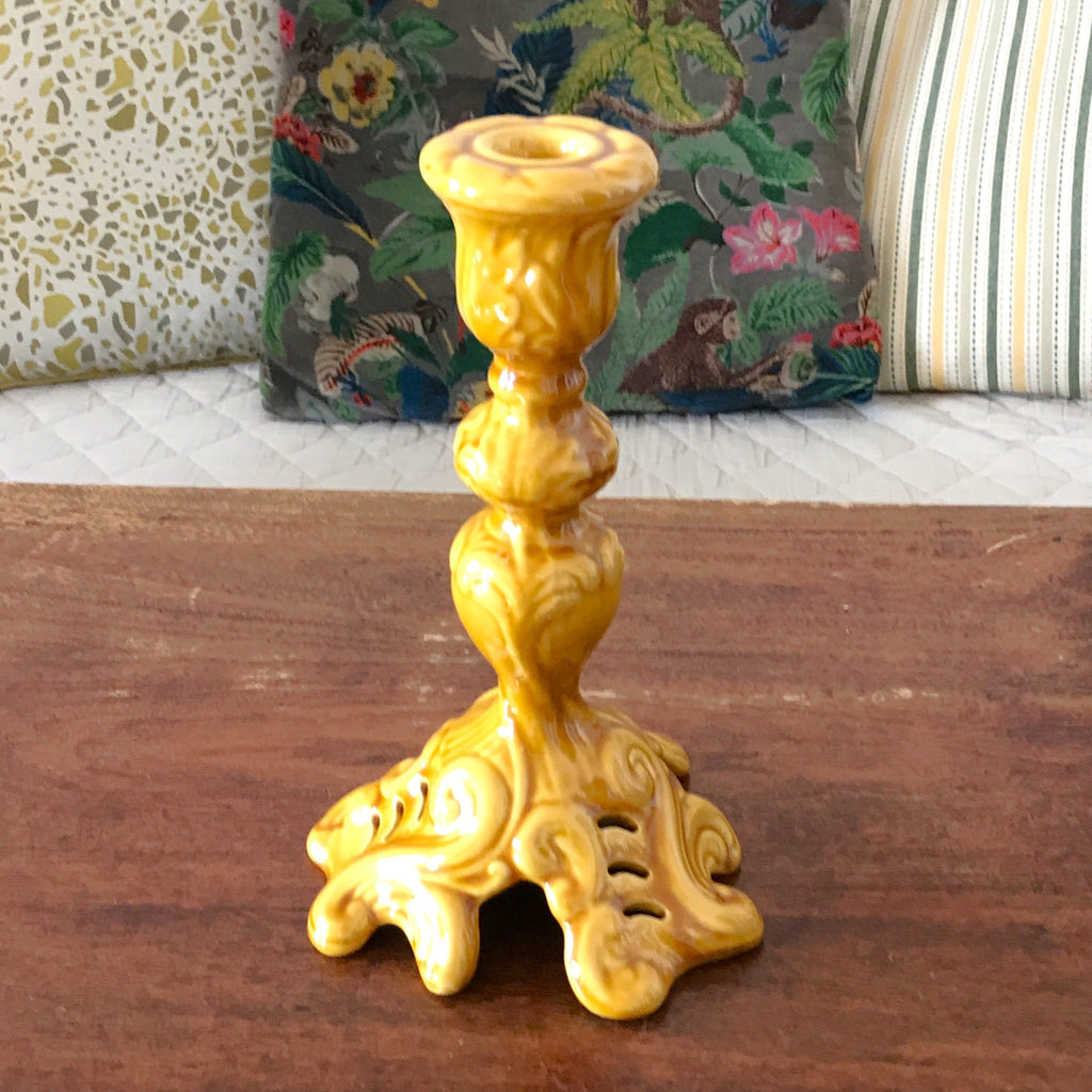 / Grand bougeoir vintage en céramique jaune de St Clément hauteur de 24 cm