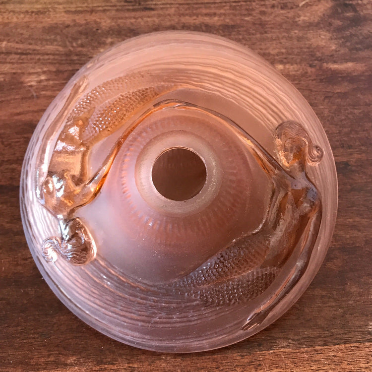 Deux sirènes sont représentées sur chaque abat-jour en tête-bêche. Le verre est transparent pour les sirènes et totalement brouillé pour le reste de l'abat-jour.