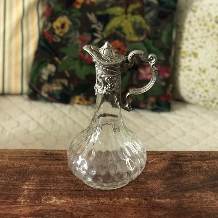 Dimensions : hauteur totale de 27 cm, diamètre maximal de 15 cm. A noter, la partie en étain n'est plus totalement fixée sur le col, donc à manipuler avec précaution.