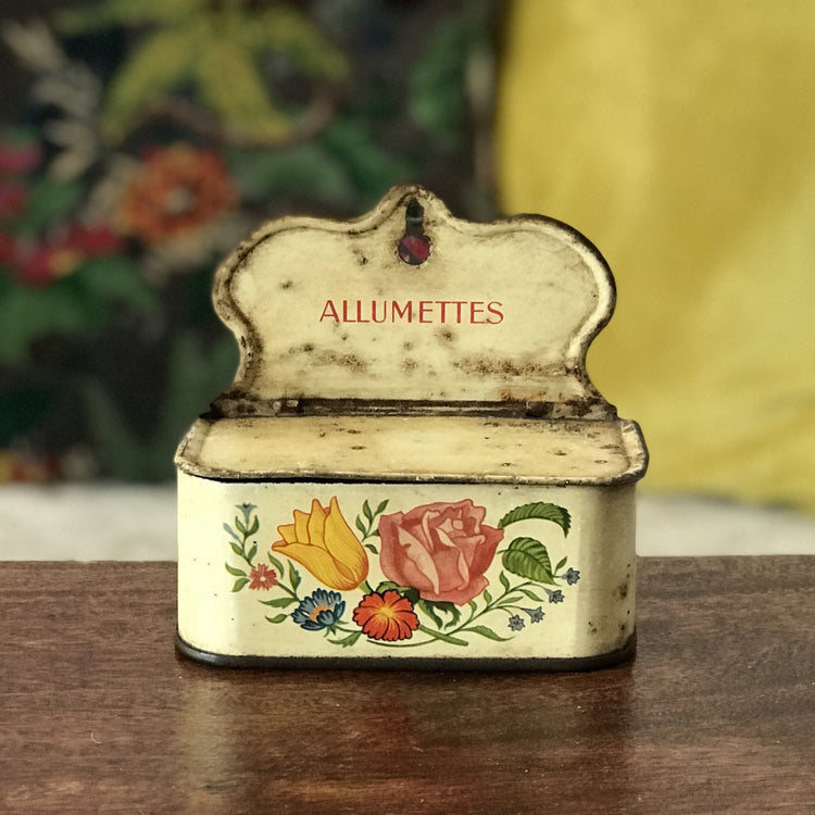 Joliment décorée d'un bouquets de fleurs multicolores champêtres. Ancienne, elle porte le poids des ans avec ses manques et ses oxydations présentes un peu partout. Possibilité de la fixer au mur grâce à l'encoche présente ou à poser simplement.