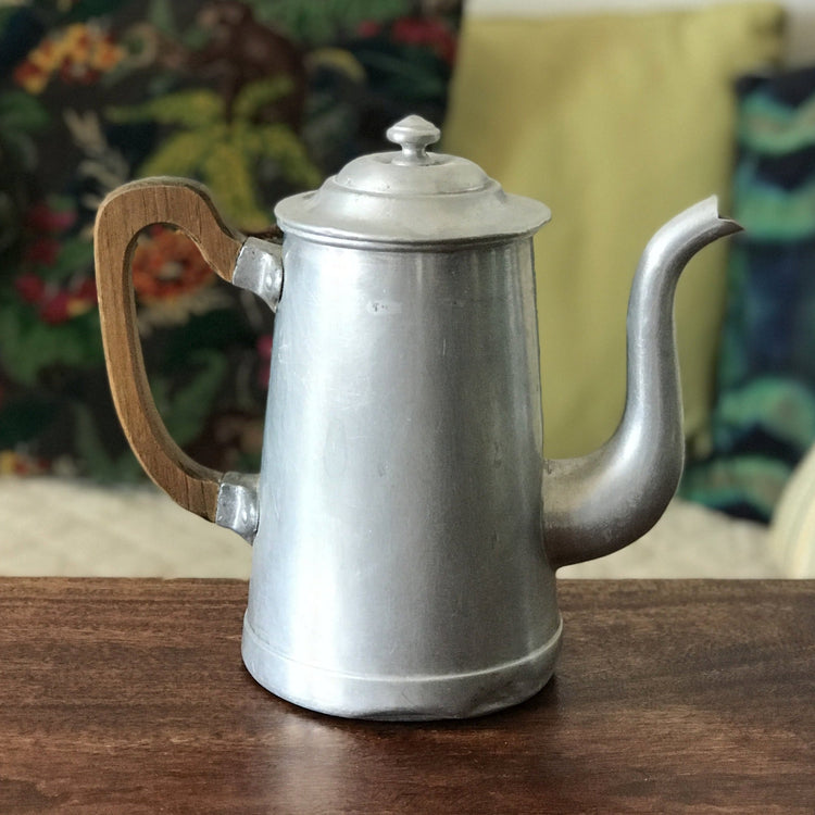 On la retrouvait dans toutes les cuisines au début XXème siècle. Elle était utilisée pour préparer le café. A noter, le filtre est manquant et elle porte des traces de coups et d'oxydation en raison de son utilisation passée.