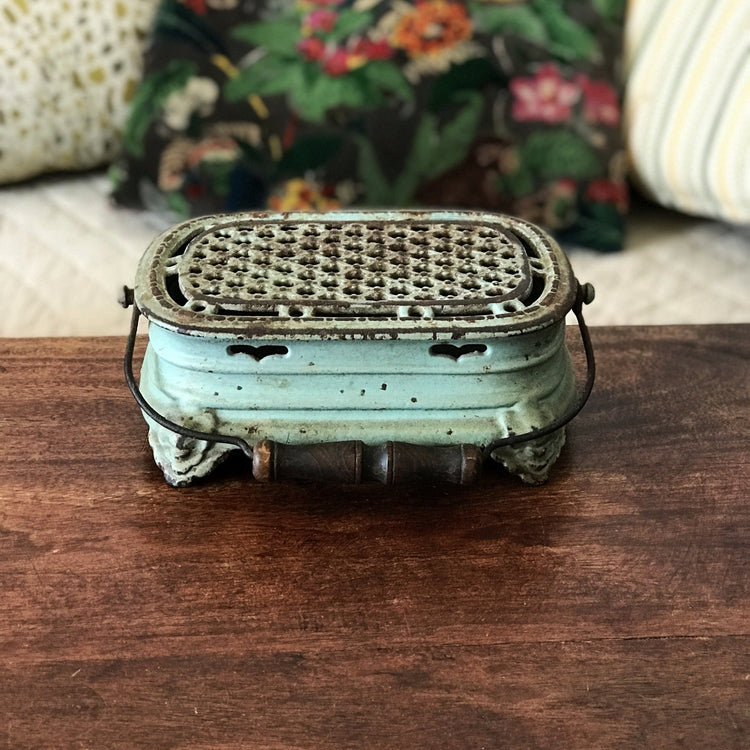 Chaufferette réchaud portable en fonte émaillée vert céladon