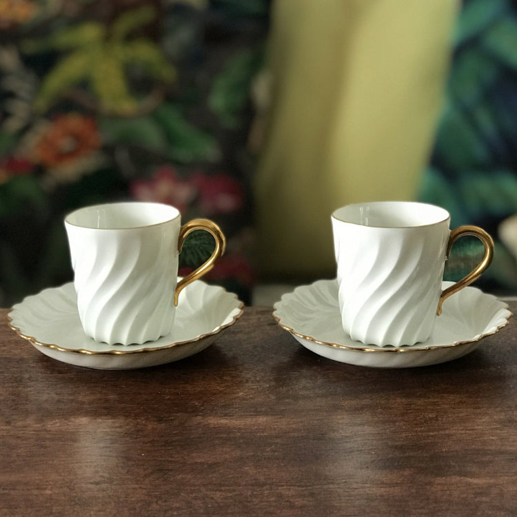 / Ensemble de 2 tasses à café et 2 sous-tasses en porcelaine Haviland modèle Torse