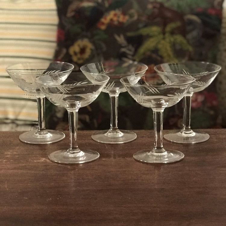Ensemble de 5 coupes à champagne en cristal gravé épis de blé