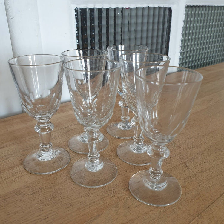 / Ensemble de 6 verres anciens à liqueur ou digestif sur pied en verre moulé