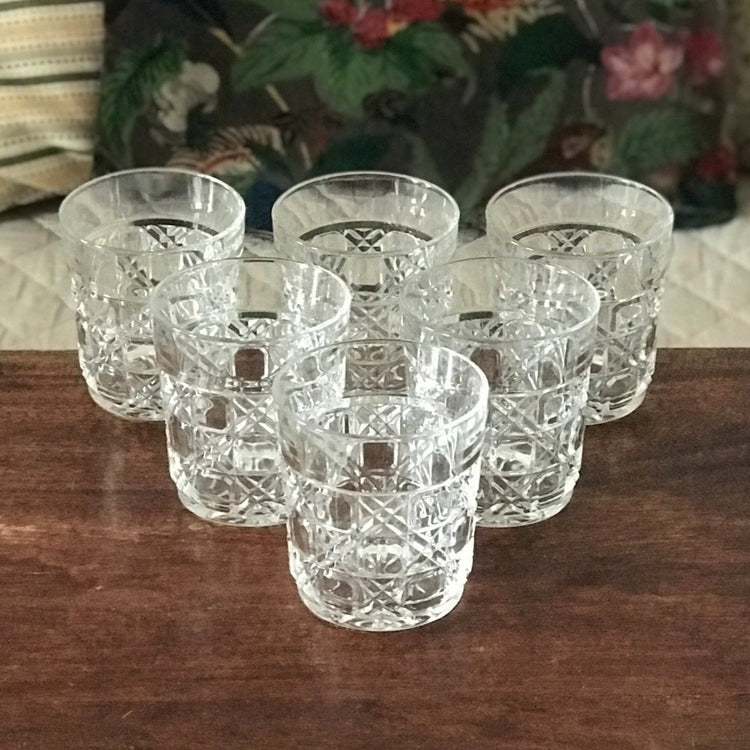Lot de 6 verres à whisky en verre moulé motifs carrés et croix