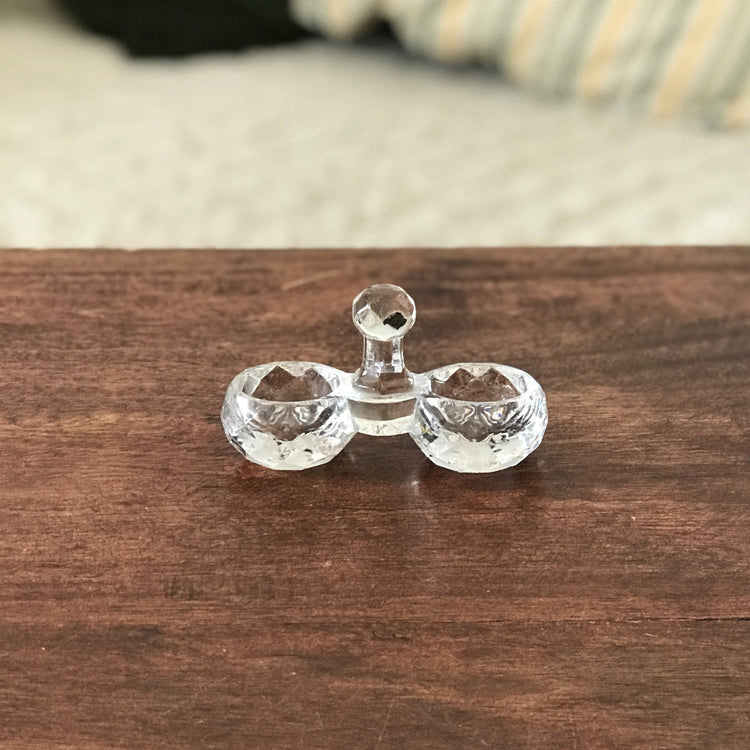 Elégant, il est facetté de tous les côtés. Ceci lui donne un éclat incomparable. Petite prise centrale. Difficile à déchiffrer au fond, il est indiqué Déposé dans l'un des réceptacles et Baccarat dans l'autre...