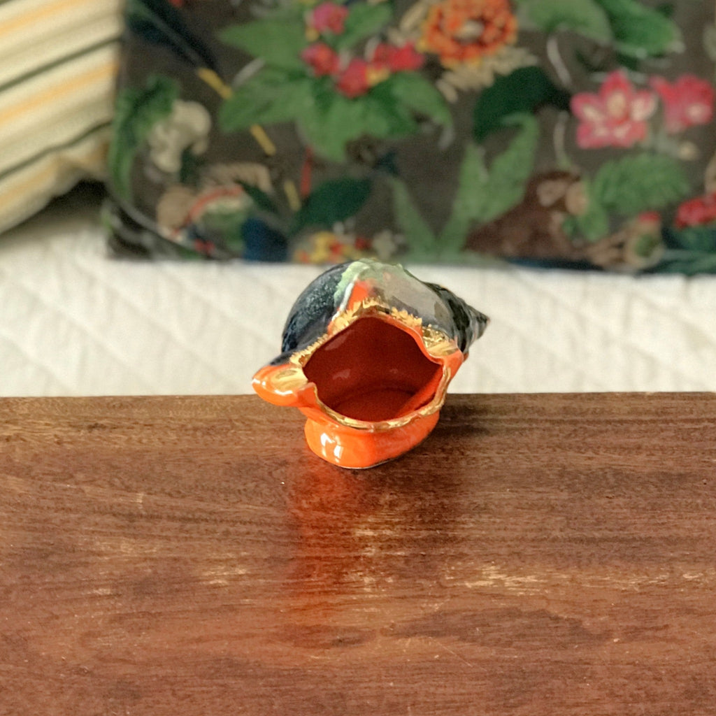 / Cendrier vintage en céramique orange en forme de coquillage