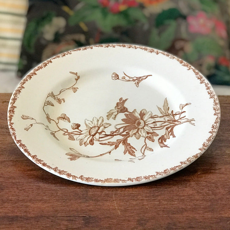 / Assiette plate ancienne Terre de Fer décor Marguerite marron attribution Lunéville