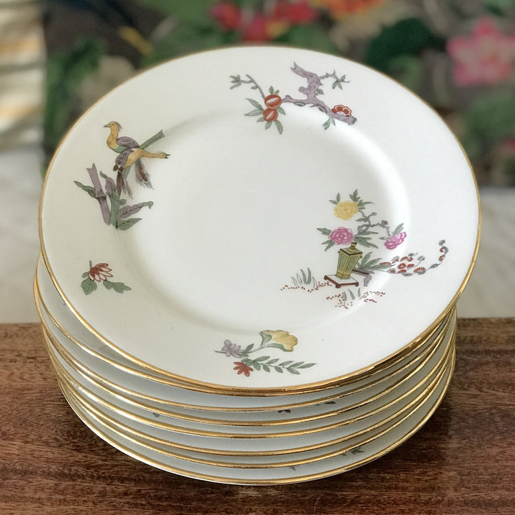 / Lot de 8 assiettes à dessert en porcelaine de Limoges William Guérin & Cie décor japonisant