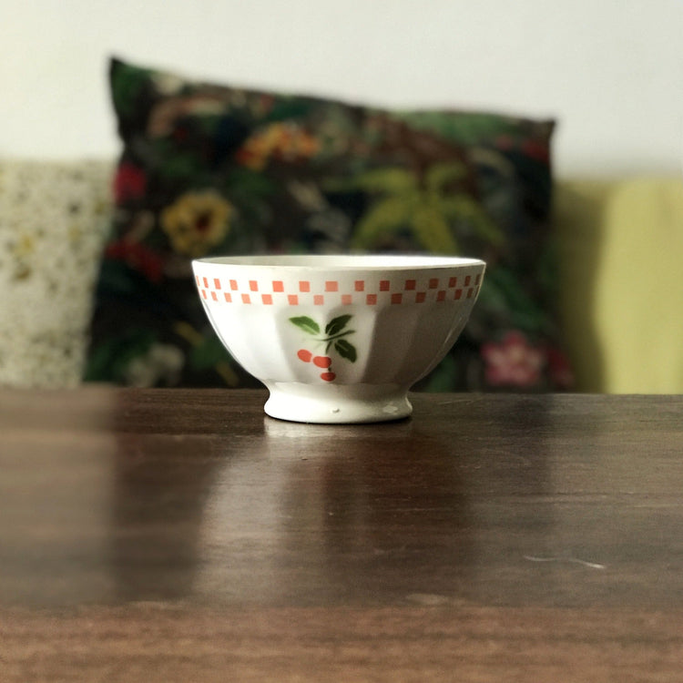/ Bol en céramique blanche décor cerises et damier Orchies Moulin des Loups