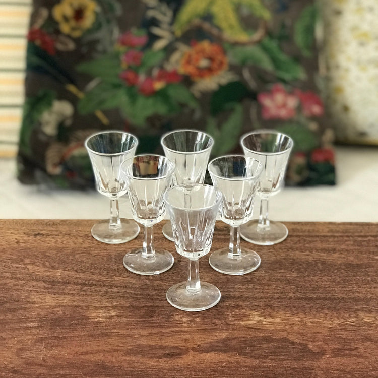 Lot de 6 verres à digestif sur pied en verre moulé décor stries