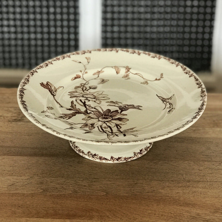 Joli décor dans les tons marrons représentant des marguerites en bouton et écloses. La marque en-dessous situe sa production toute fin XIXème voir tout début XXème siècle.
