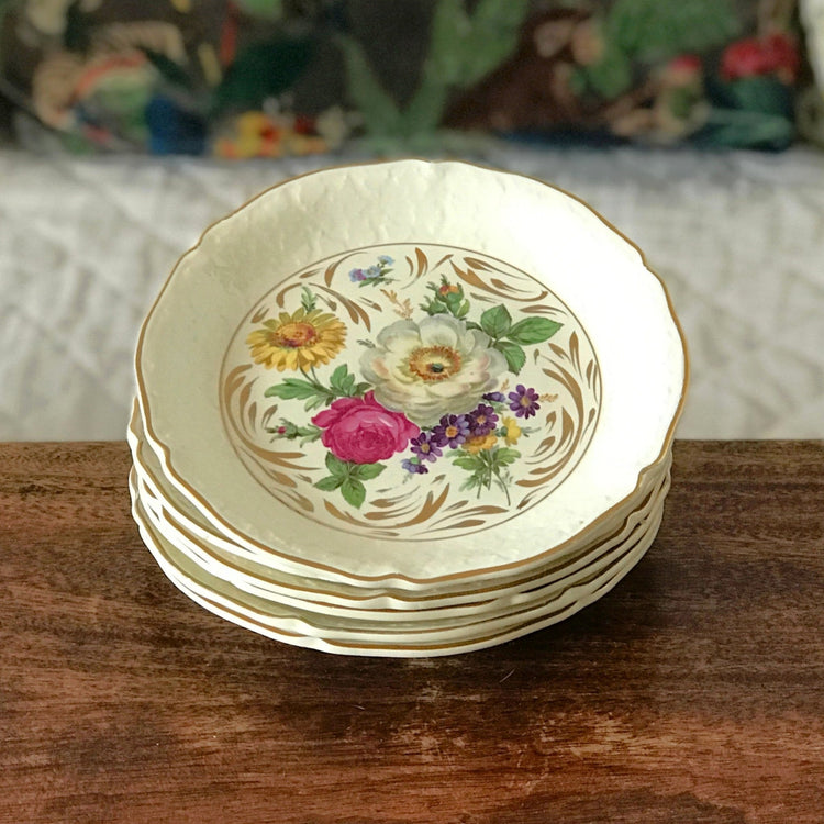 / Ensemble de 6 assiettes à dessert en céramique de Céranord France décor bouquet fleurs