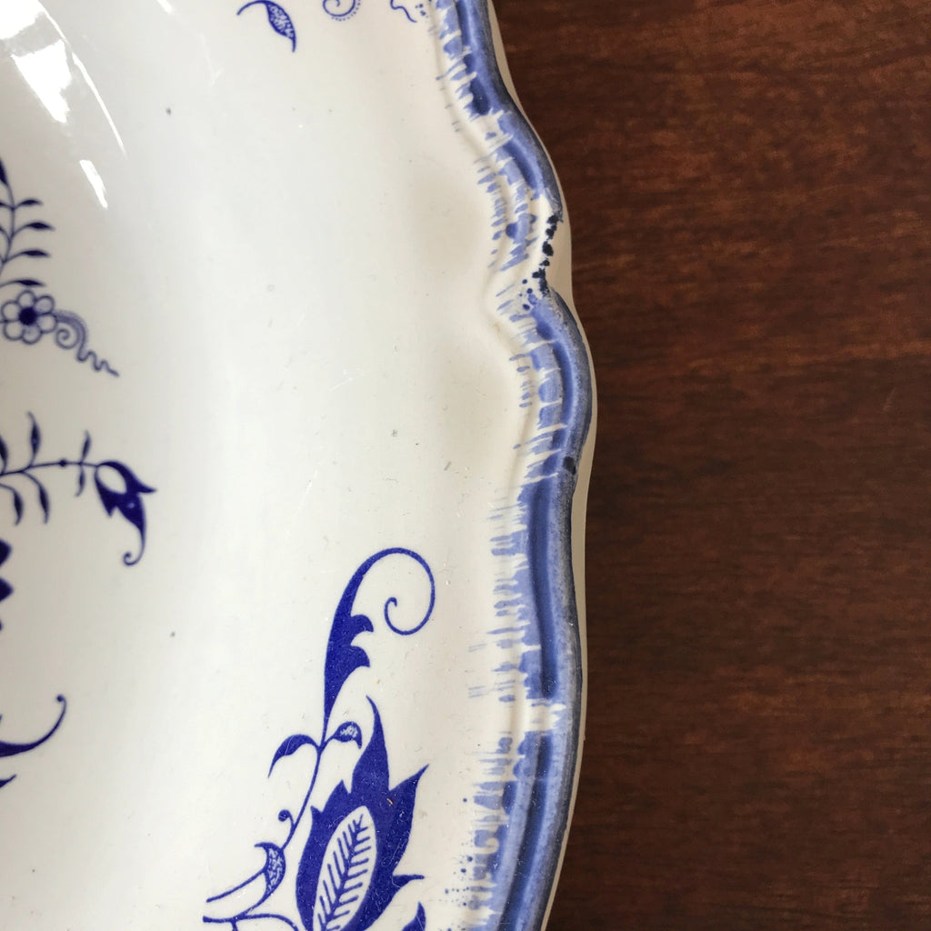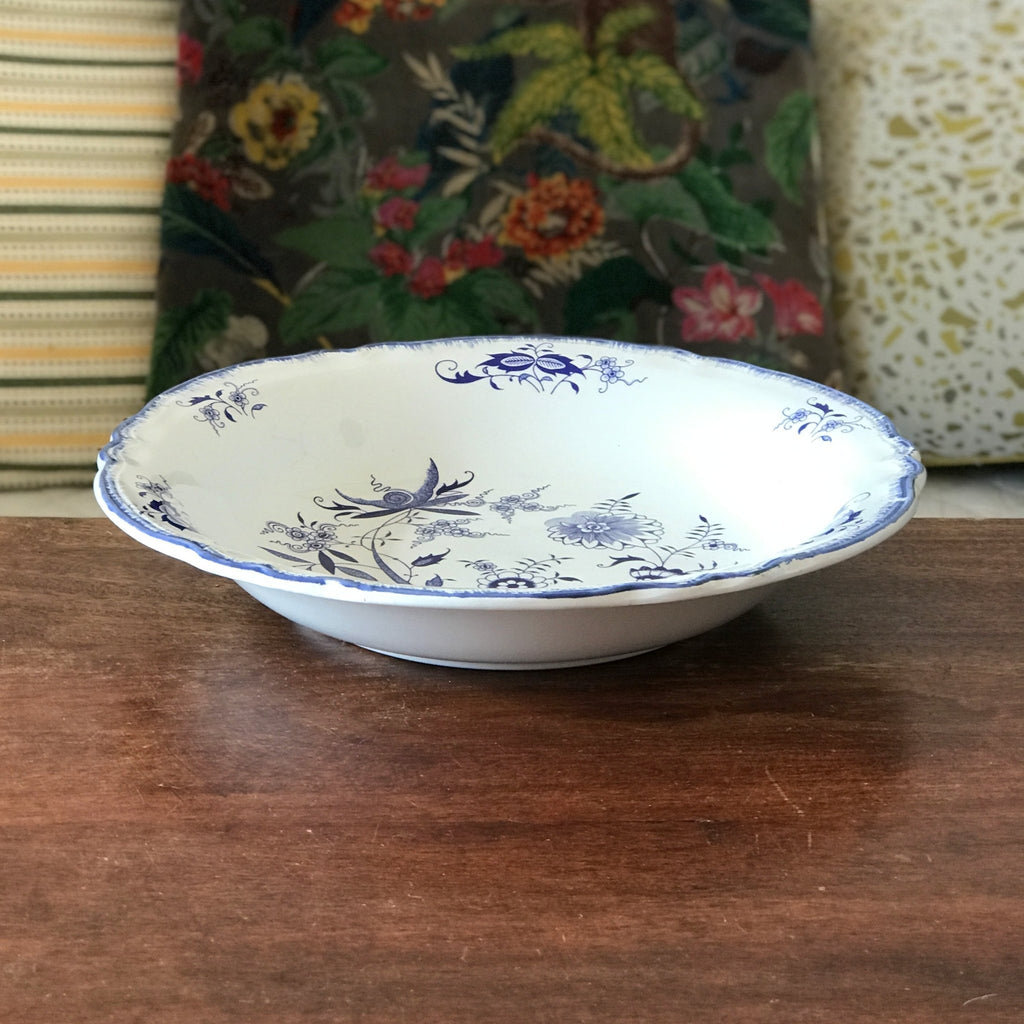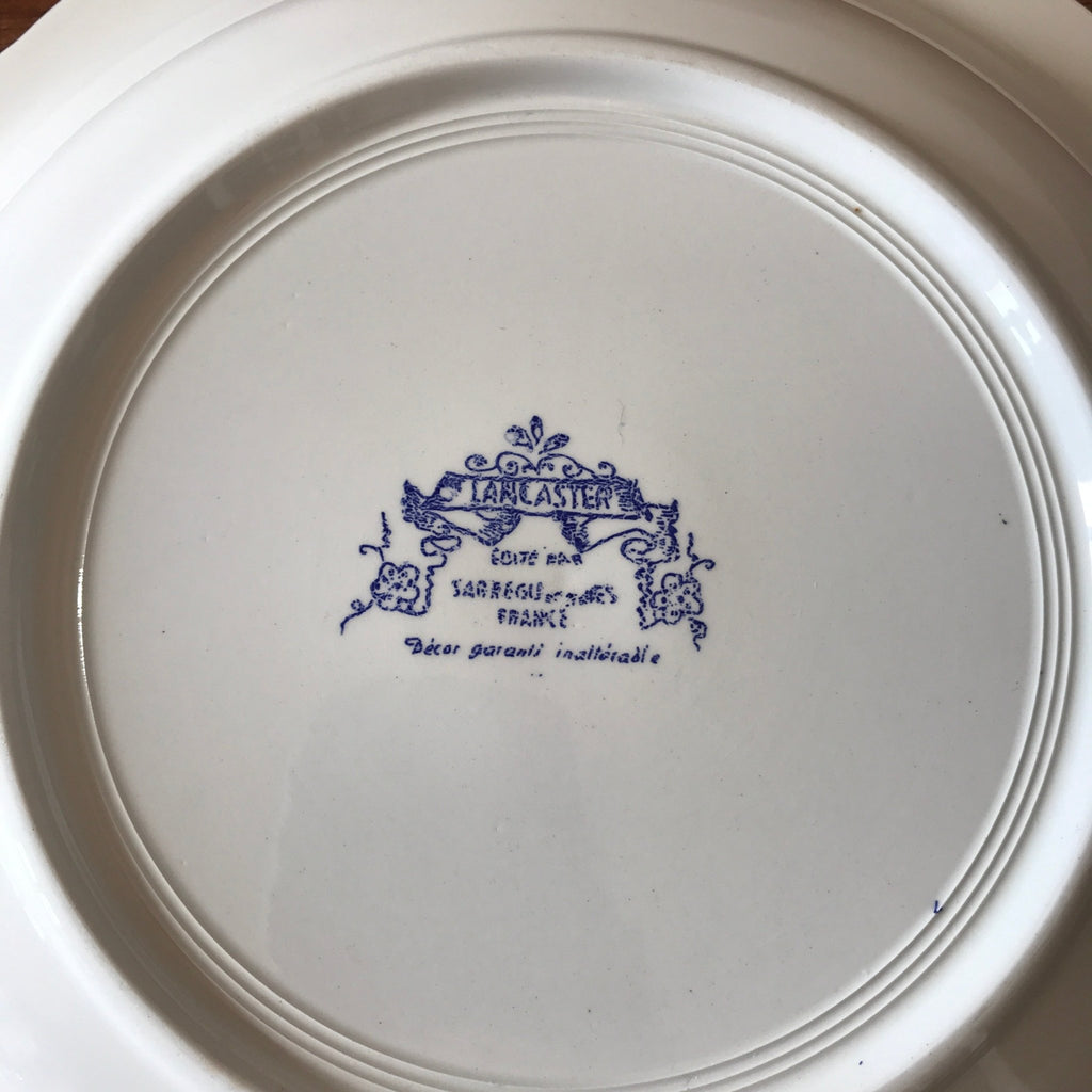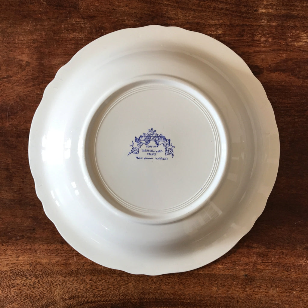 / Plat de présentation rond et creux en faïence de Sarreguemines décor Lancaster bleu
