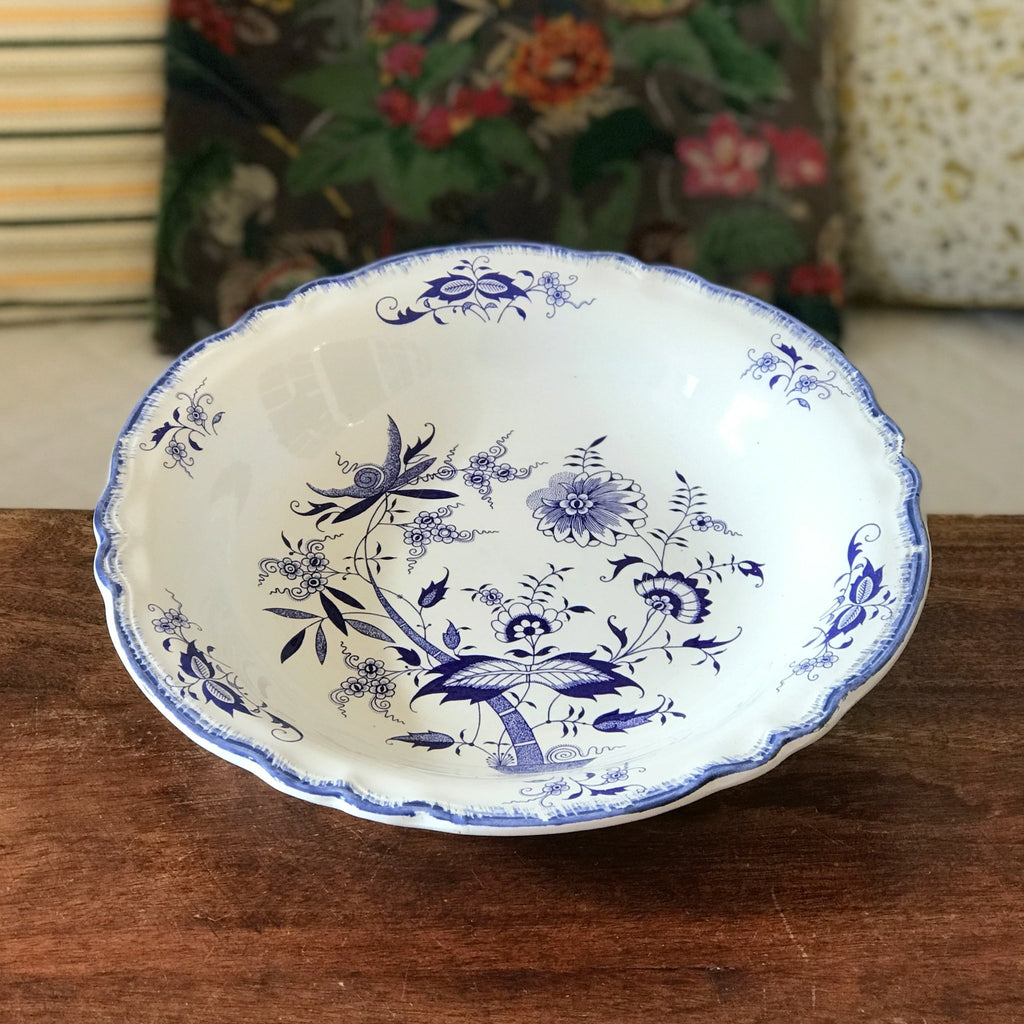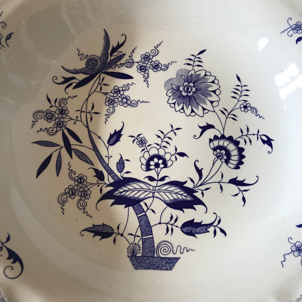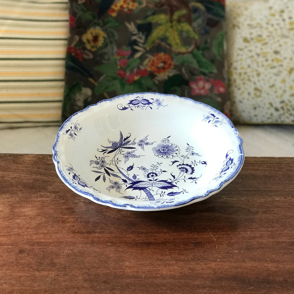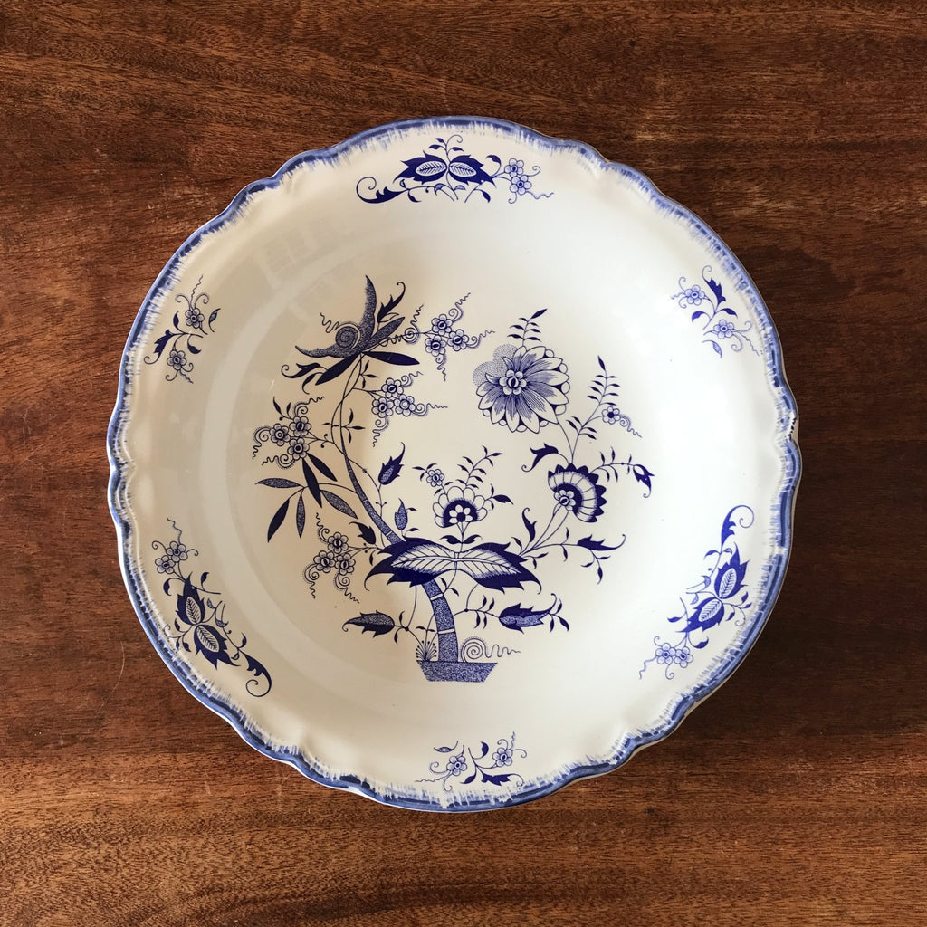 / Plat de présentation rond et creux en faïence de Sarreguemines décor Lancaster bleu