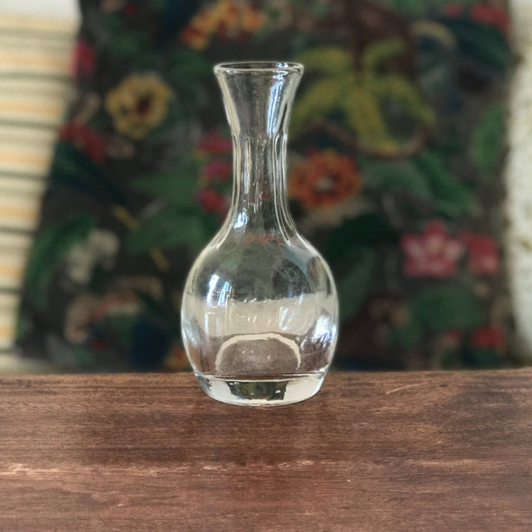 Sa production date du début du XXème siècle et il est en parfait état. Forme joliment courbée pour cette petite carafe dont le bouchon est manquant. Le col est long et évasé, il est également facetté. Aucune indication quand à la provenance de l'objet, il fera aussi très bien office de soliflore ou simplement de décoration.