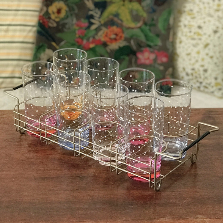 / Ensemble de 8 verres hauts à orangeade dans leur porte-verres années 50 / 60
